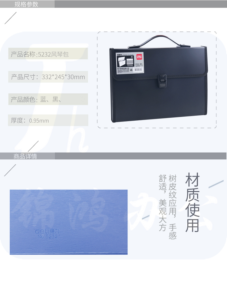 得力(deli)13格手提文件包/风琴包/文件夹/资料夹 多层时尚手提会议事务包 5232蓝色