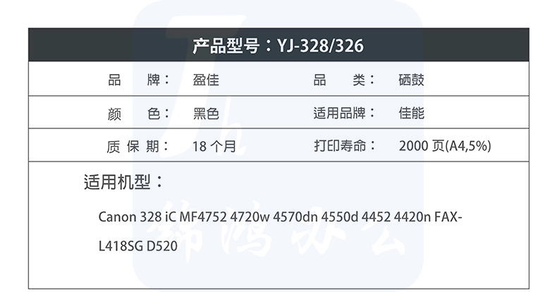 盈佳 CRG328/326碳粉(带芯片)Canon 328 iC MF4752 4720w 4570dn 4550d 4452 4420n FAX-L418SG D520