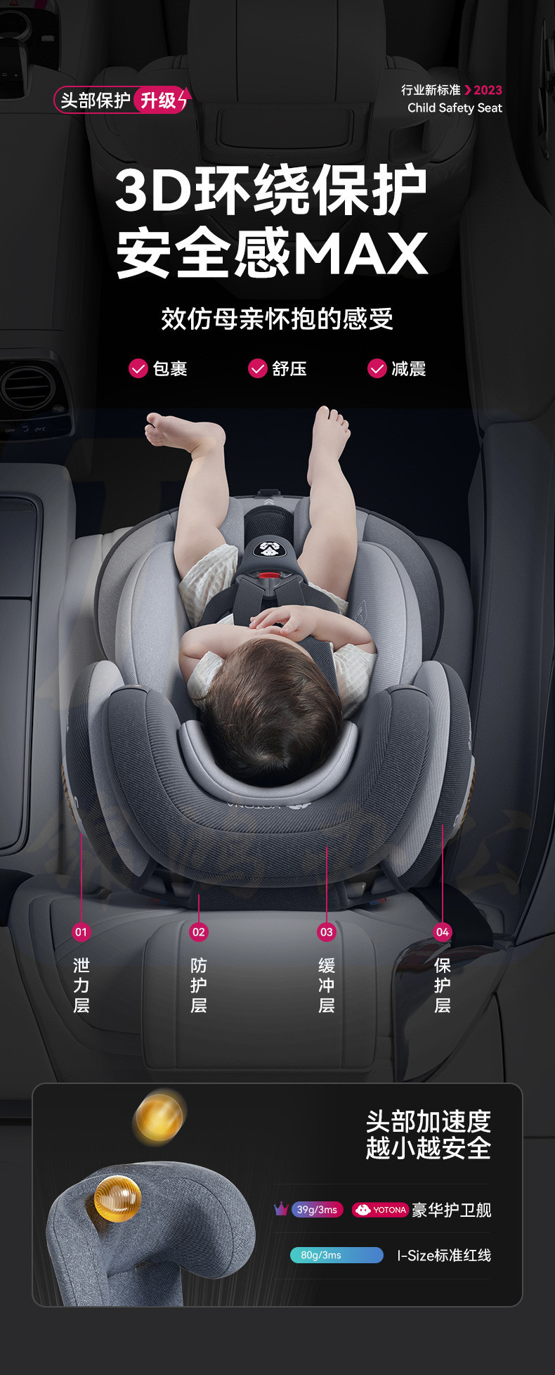 Yotona儿童安全座宝宝汽车用0-4-12岁便携安全坐可坐可躺YT01
