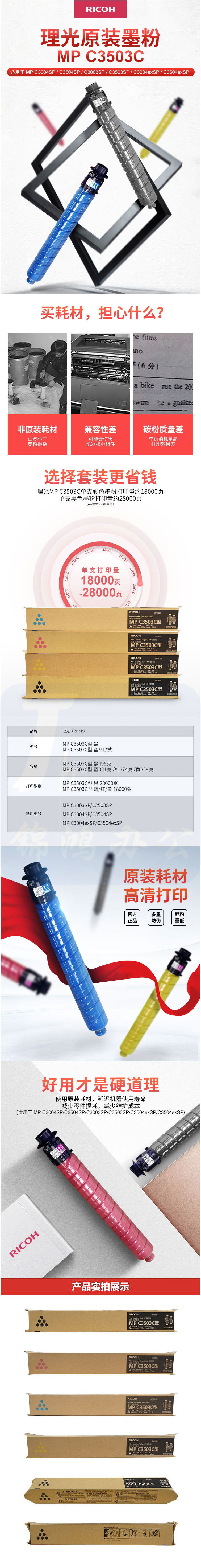 理光 MPC3503C 黑色鼓粉盒 1支装 适用MP C3003SP/C3503SP/C3004SP/C3504SP