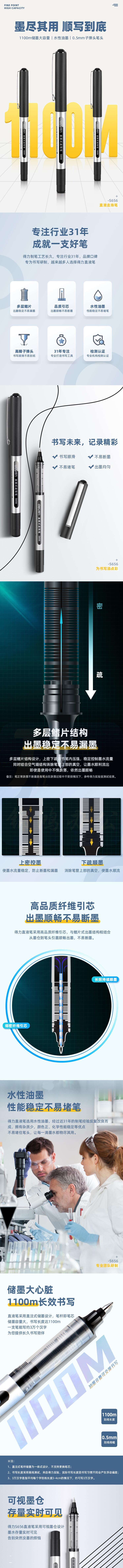 得力 S656 0.5mm直液式走珠笔 宝珠笔中性笔签字笔 黑色 单支