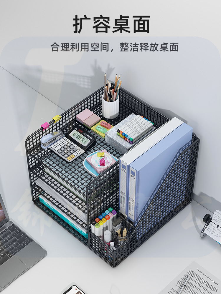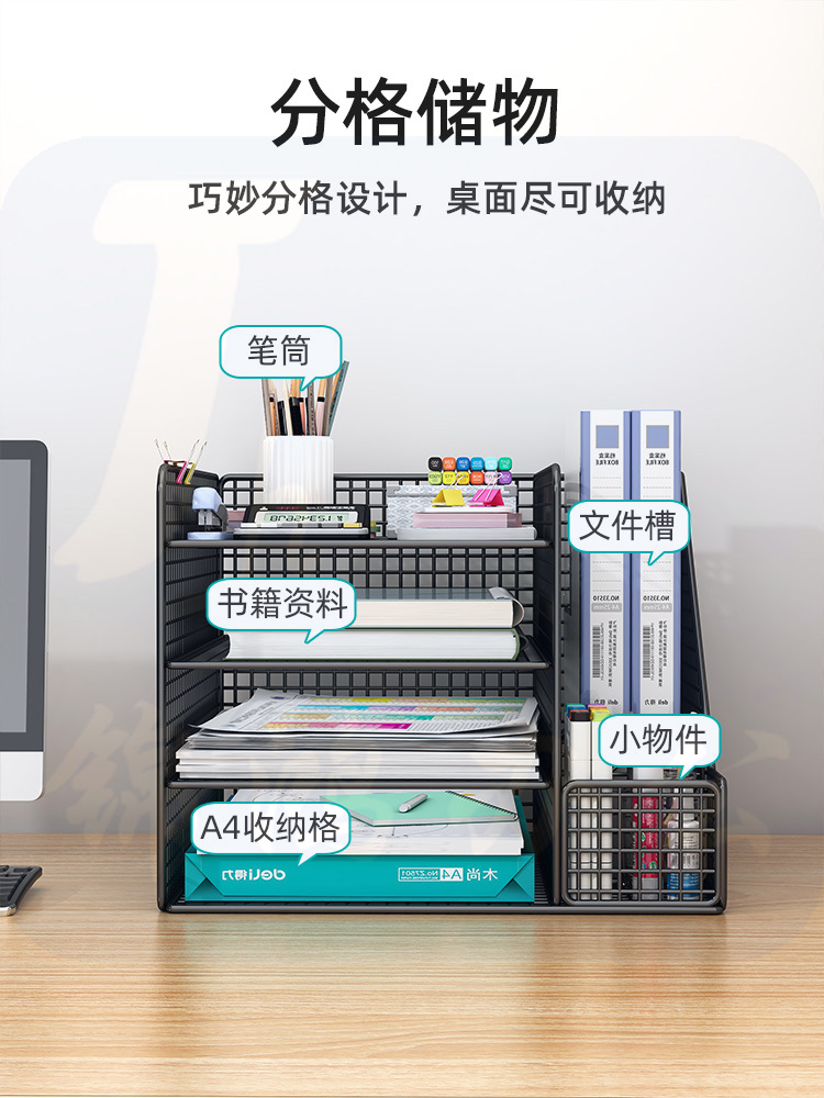 办公桌面置物架文件收纳架文件收纳盒办公用品大全多层文件架A4文件框文件夹资料档案整理架铁艺金属书立架子