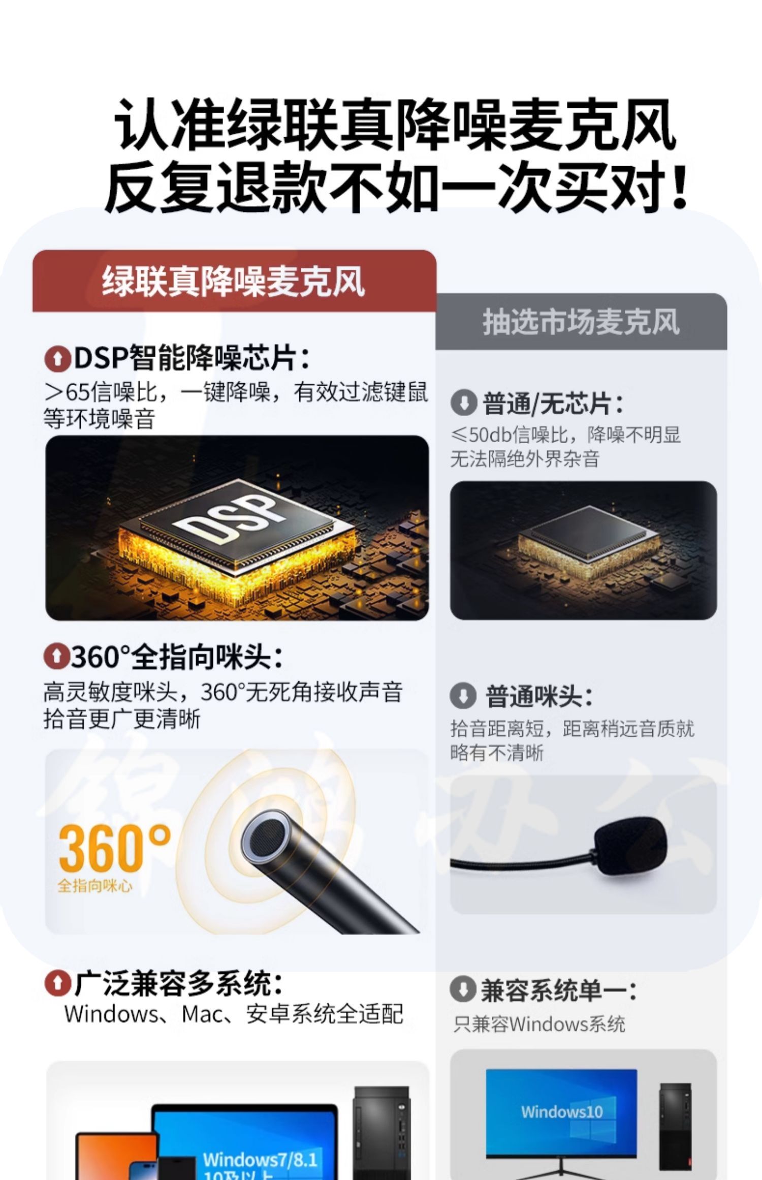 绿联麦克风电脑台式直播专用游戏降噪话筒家用收音桌面笔记本usb 【标准款】48kHz高采样★360°全指向拾音★金属鹅颈杆身 外被软管