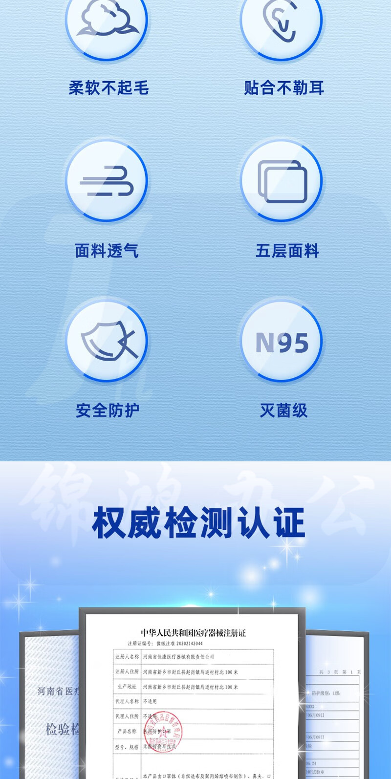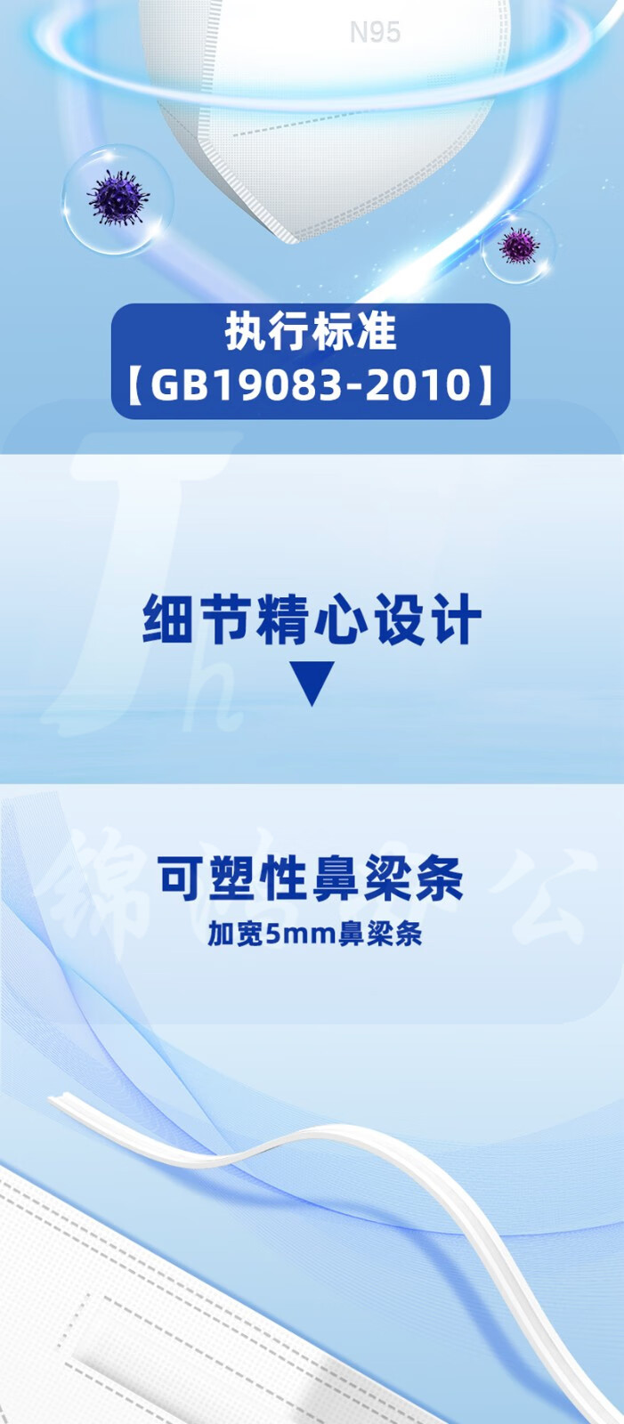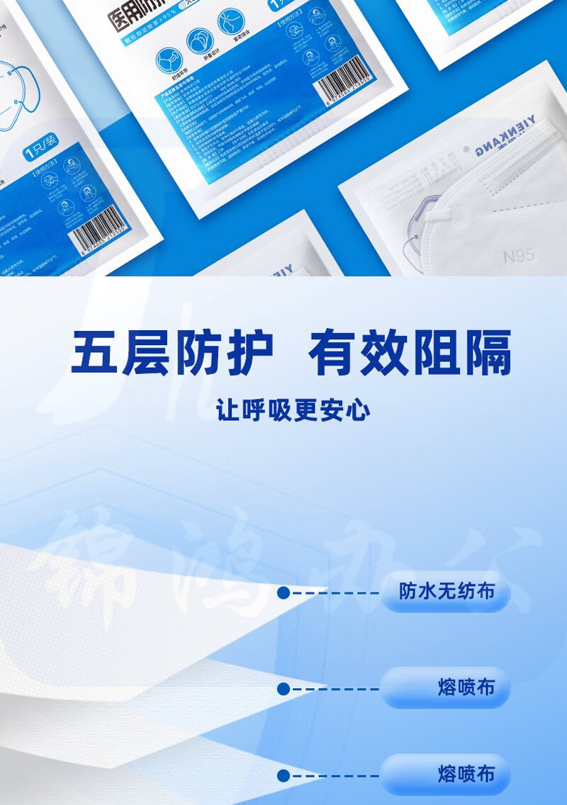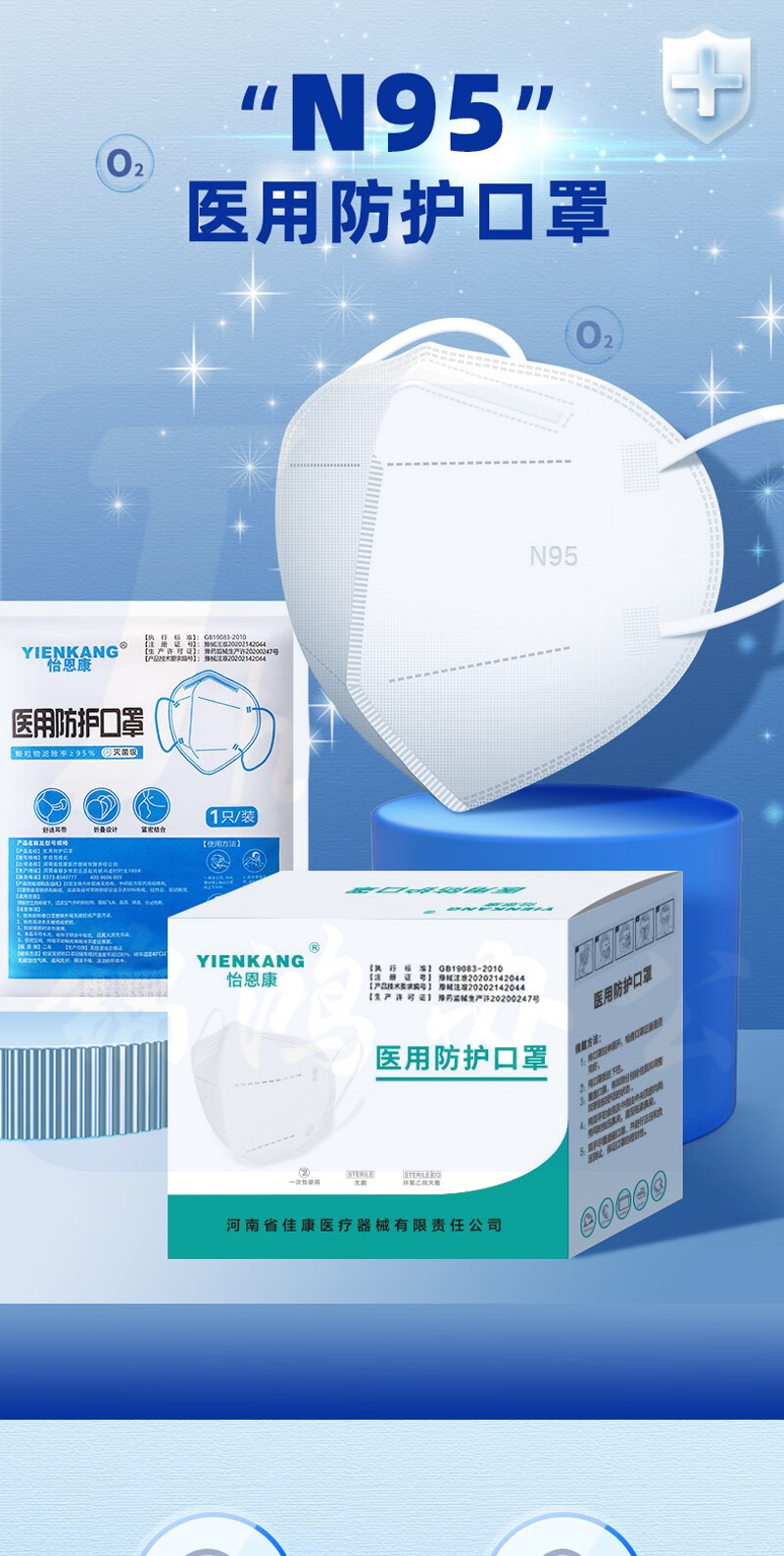 怡恩康 N95型口罩 五层过滤耳挂式一次性防护防尘3d立体口罩灭菌级独立包装 白色 独立包装