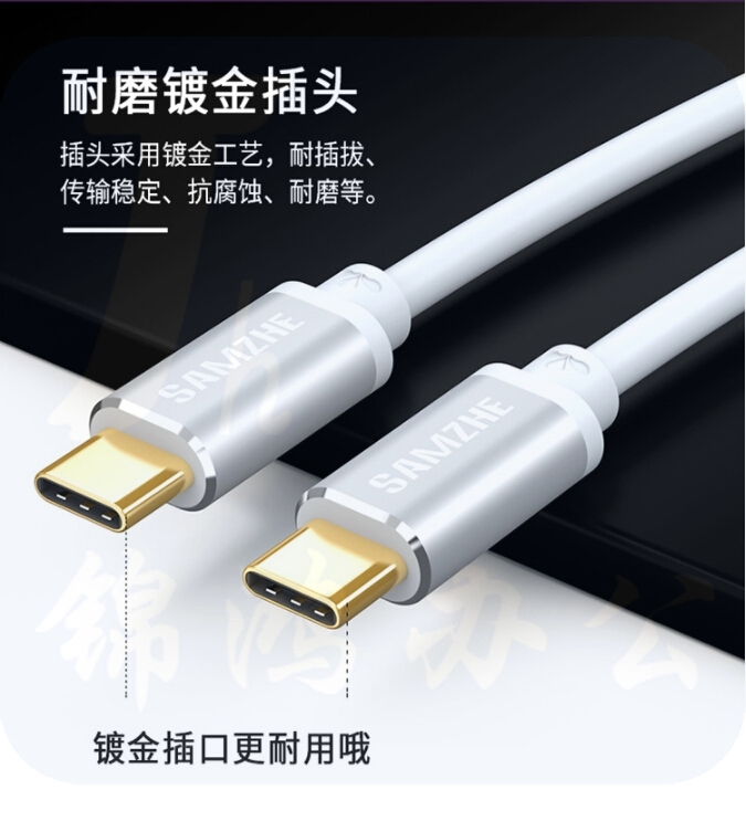 山泽 Type-C公对公数据线 USB3.1传输 3A快充充电器线 双头USB-C手机转接头线 苹果MacBook华为 0.5米 银色
