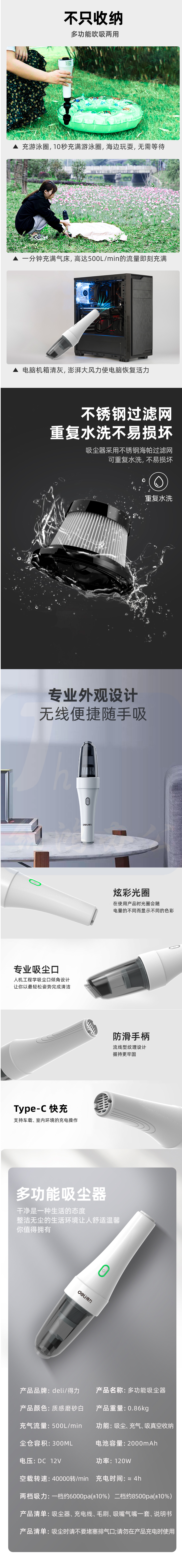 得力8500pa手持无线车载吸尘器锂电池可充气 DL881120