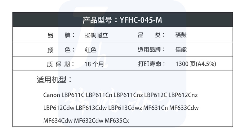 扬帆耐立YFHC CN-045红鼓-1.3K(带芯片)LBP611C LBP611Cn LBP611Cnz LBP612C LBP612Cnz LBP612Cdw LBP613Cdw LBP613Cdwz MF631Cn
