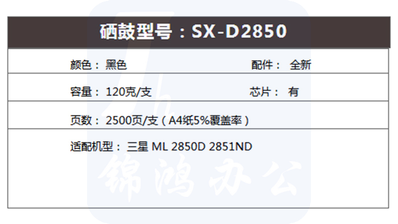 盈佳YJ SX-D2850黑鼓(带芯片) 适用机型:Samsung ML 2850D 2851ND