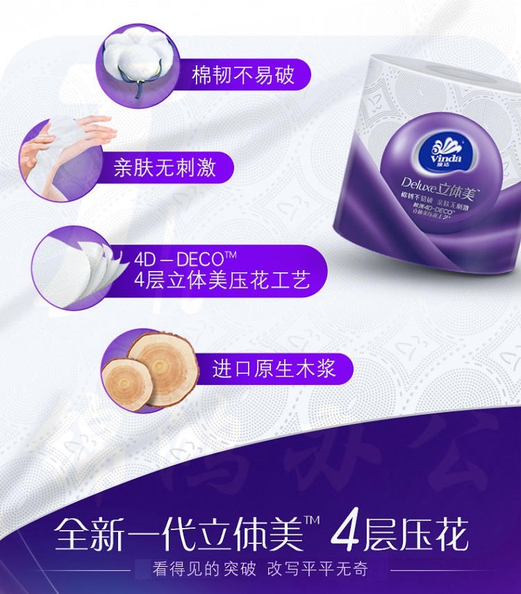 维达(Vinda) 立体美卷纸 纸巾 手帕纸24卷 X 163g
