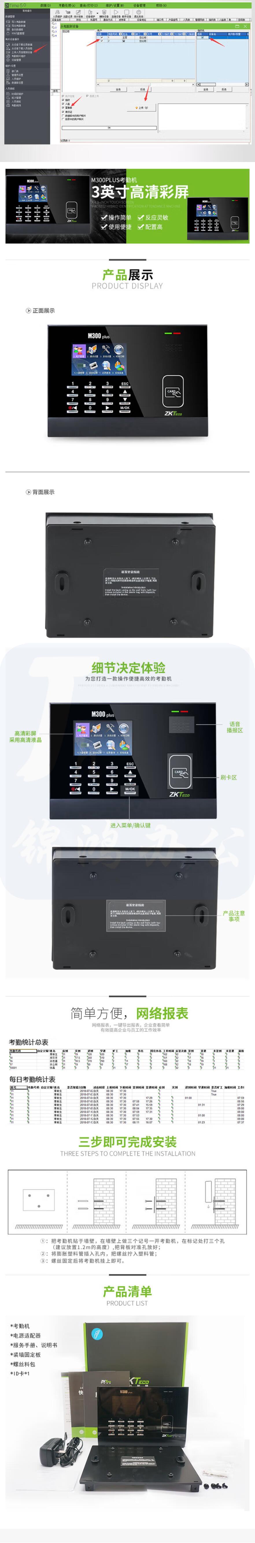 中控 考勤机射频卡刷卡机考勤机M300PLUS(ID卡)
