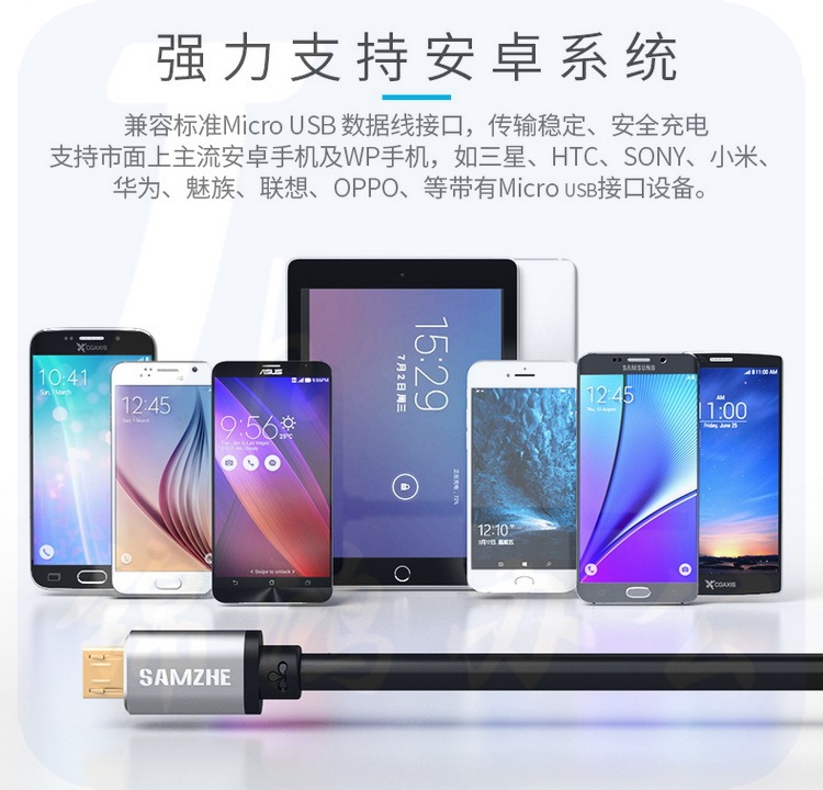 山泽 安卓数据线 手机充电线 3A快充Micro USB充电器线 支持华为小米vivo/oppo红米三星魅族 2米 黑色