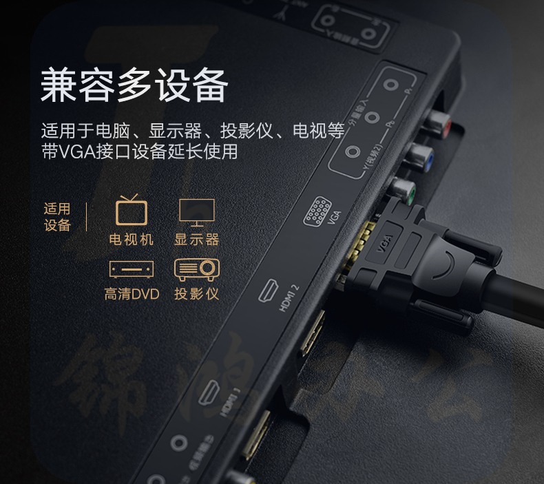 绿联 VGA延长线公对母3+6线芯 工程级VGA高清连接线 笔记本电脑显示器电视投影仪视频加长转接线 母头螺母 2米