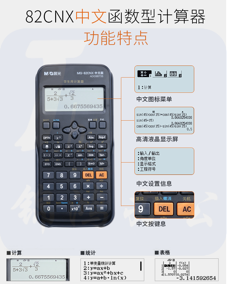 晨光(M&G)函数计算器 多功能学生用科学计算机 工程考试用大学会计金融 ADG98733