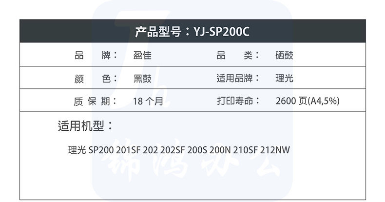 盈佳 SP200C黑鼓适用理光 SP200 SP201 SP202SF SP203 SP204 210SU 210SF SP212Nw