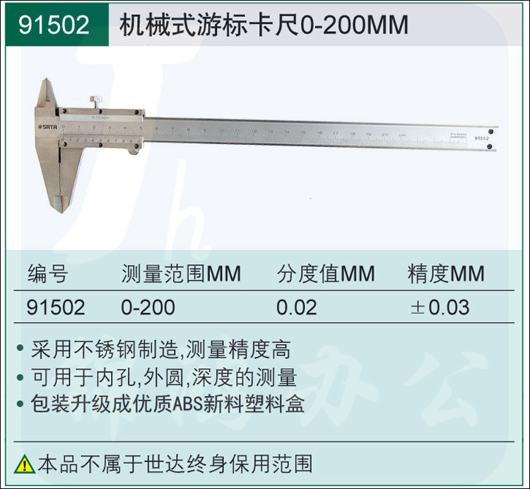 世达(SATA)高精度机械式游标卡尺0-200MM 91502