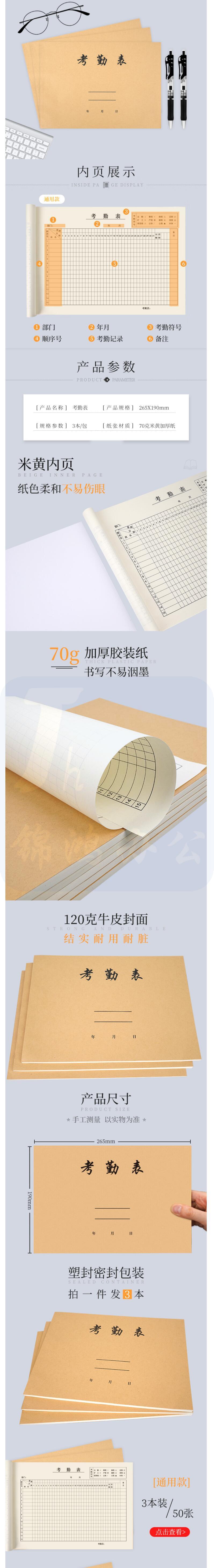 西玛 考勤表记工本31天出勤表 签到表 50张 3本装 6765 货号:WY