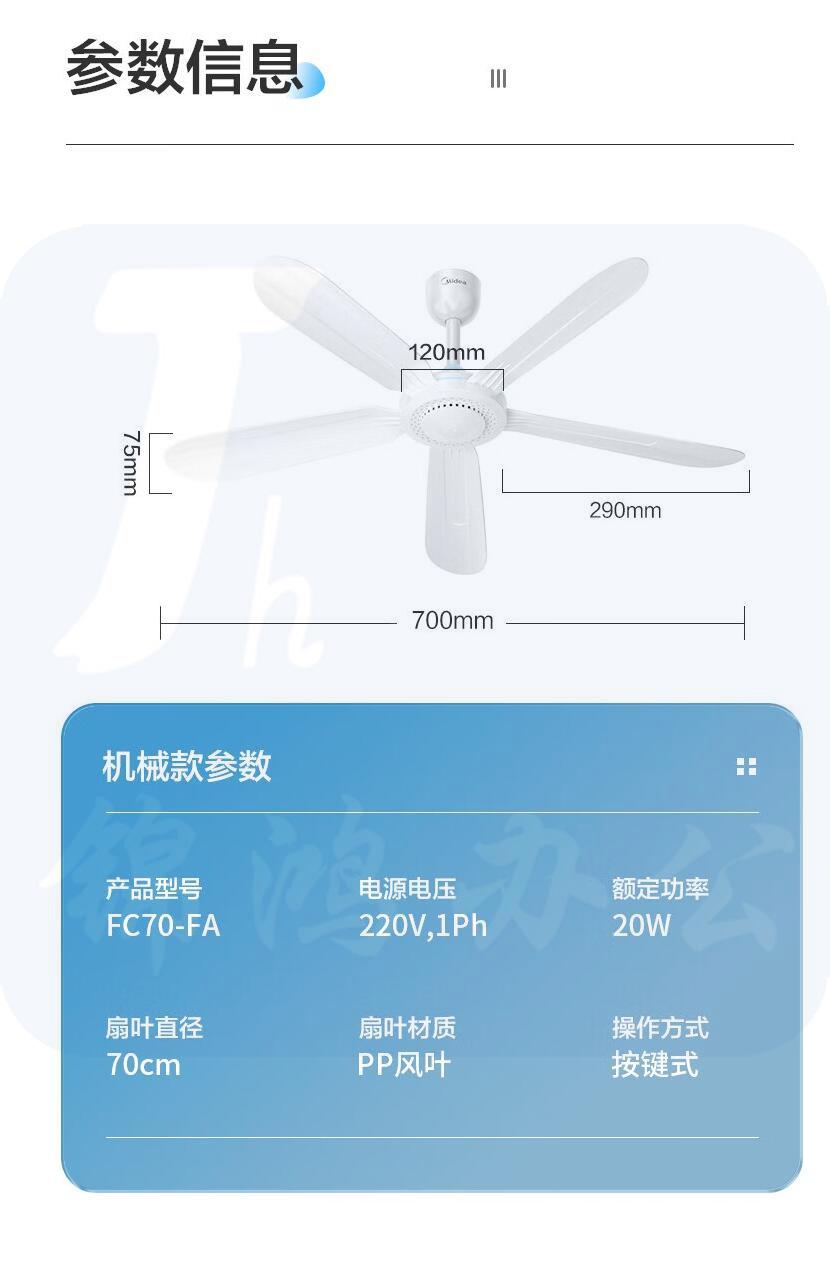 美的(Midea) FC70-FA 小吊扇 小型电风扇 蚊帐扇 微型吊扇 直径700MM