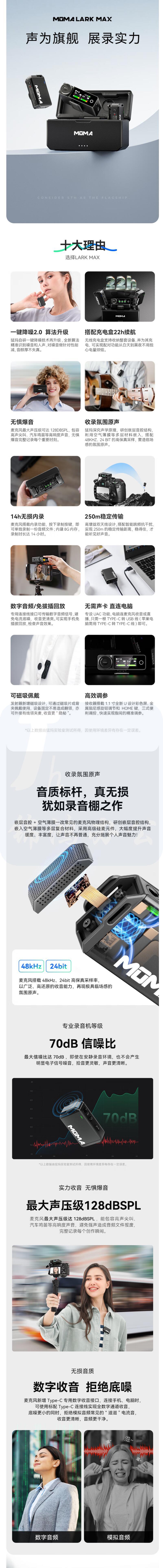 猛玛 无线领夹麦克风Lark Max 一拖二 货号:YC