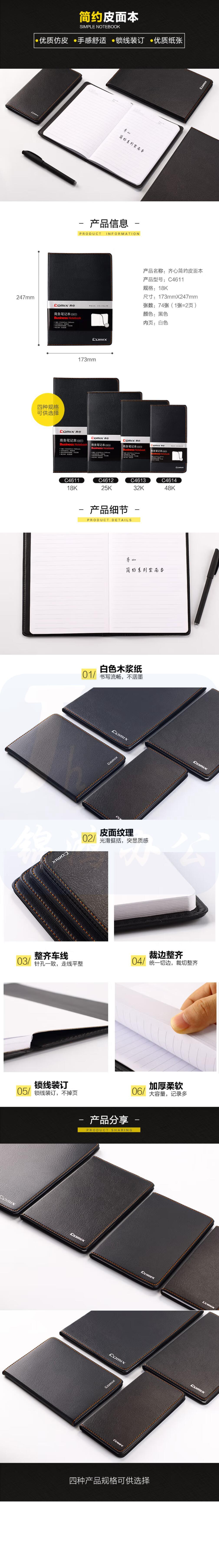 齐心 18K/74张简约系列皮面笔 C4611