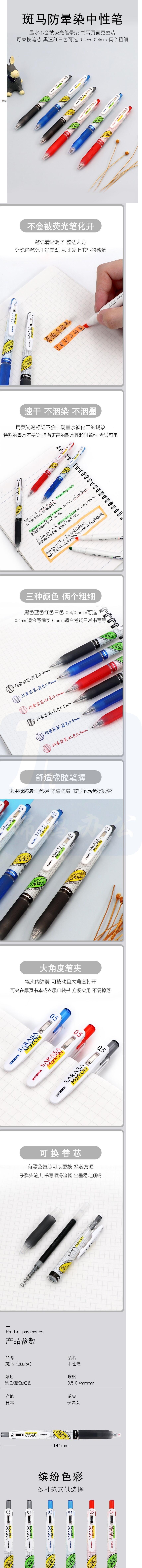 斑马牌 中性笔速干 按动水笔不晕染笔 JJ77-BK 0.5mm黑