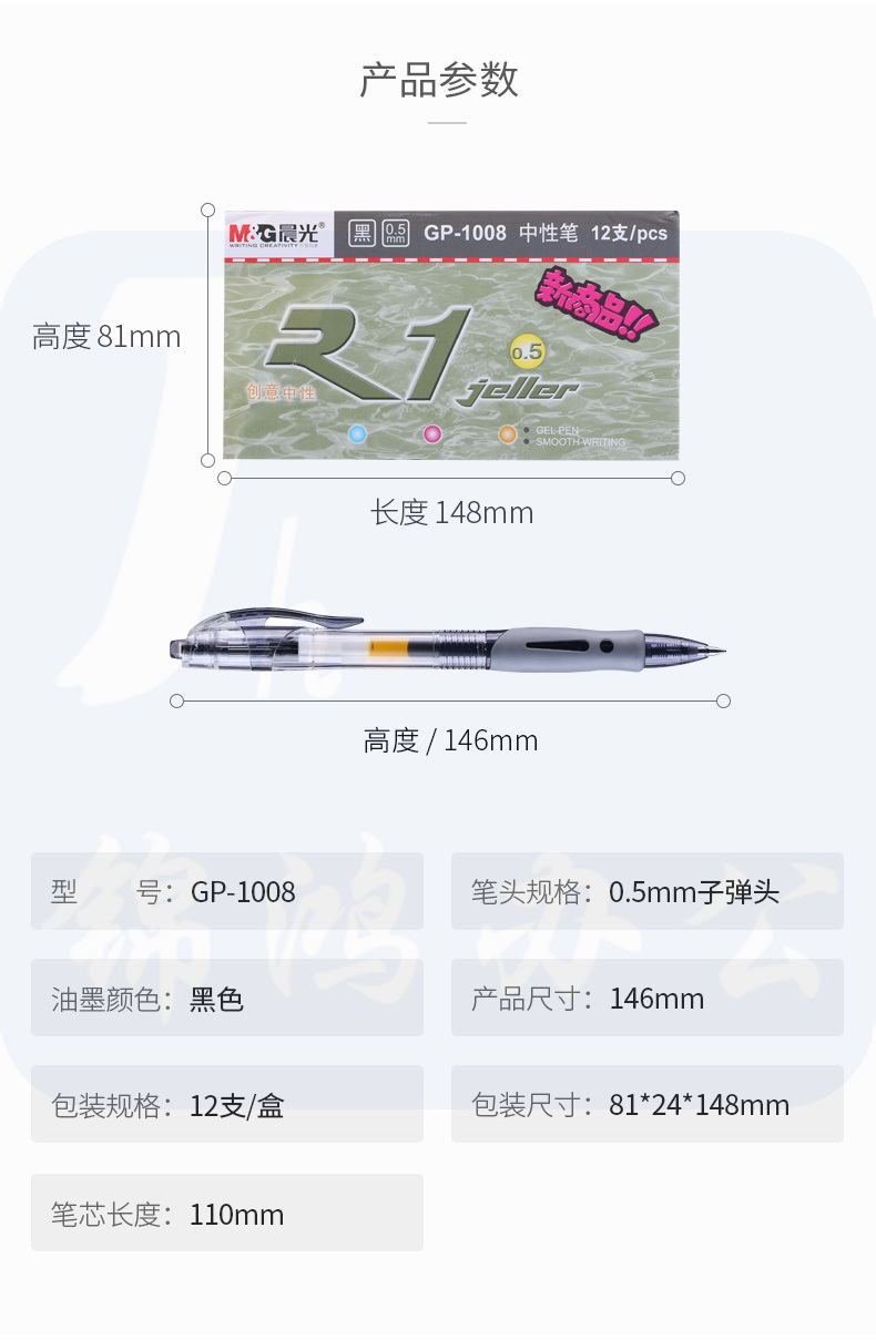 晨光 中性笔 GP-1008 0.5mm 签字笔(黑色) 12支/装