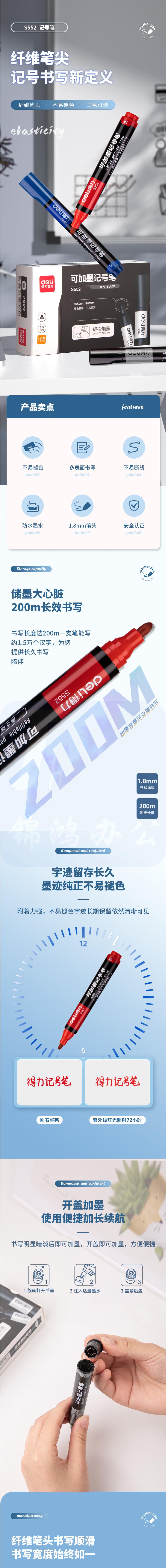 得力 S552记号粗头黑色 可替换墨水 按支销售