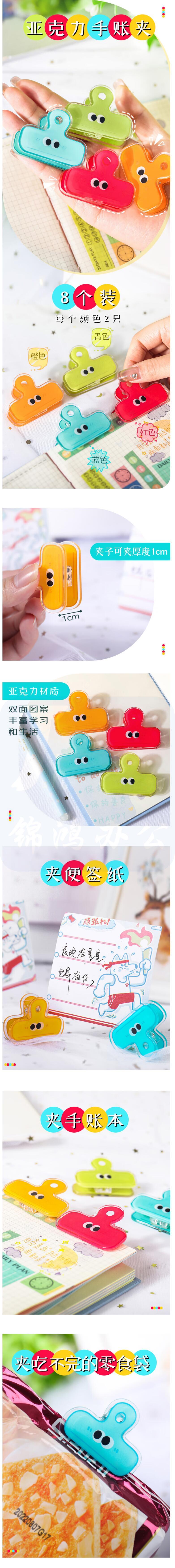 表情燕尾夹 彩色长尾票夹 大眼款亚克力书夹子 8个装