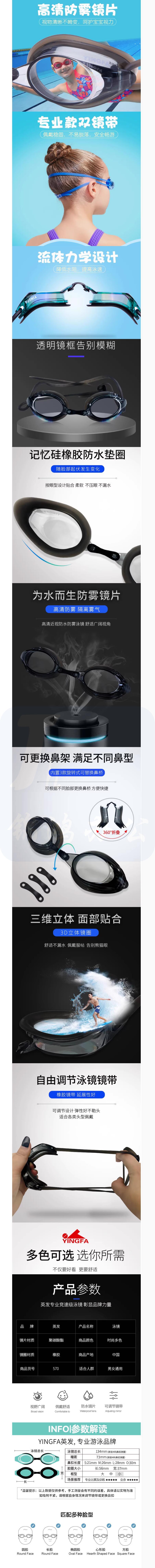 英发 游泳眼镜 专业型比赛训练游泳镜 Y570AF 货号:JC