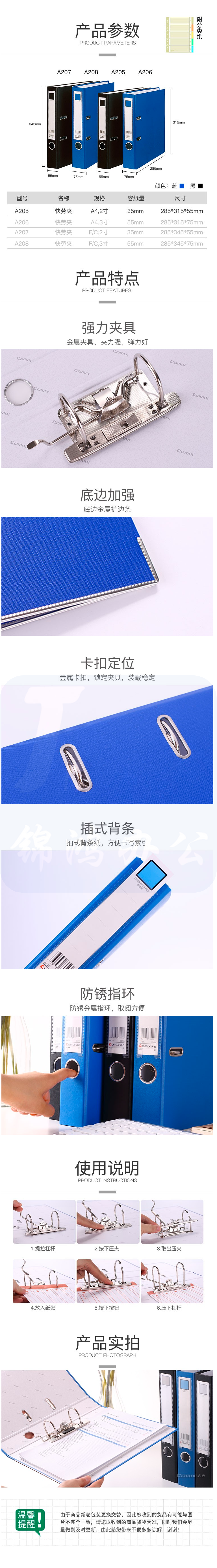 齐心 文件夹A208 F/C 3寸半包胶285*345*75mm 黑色