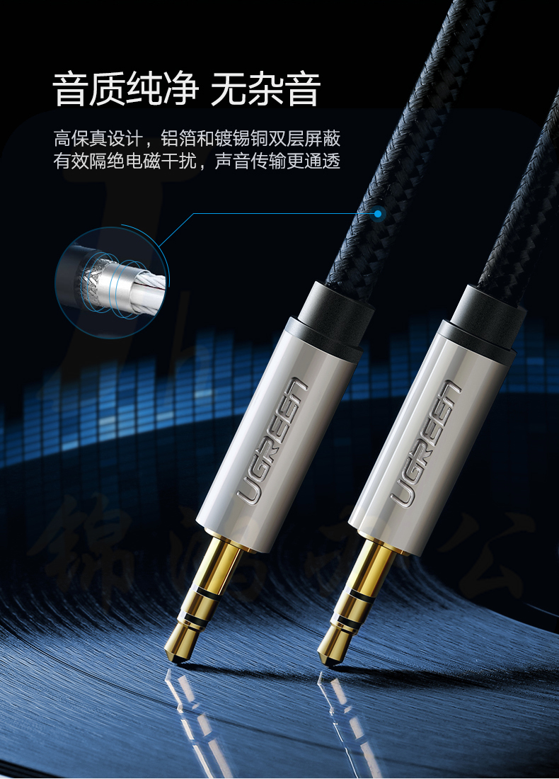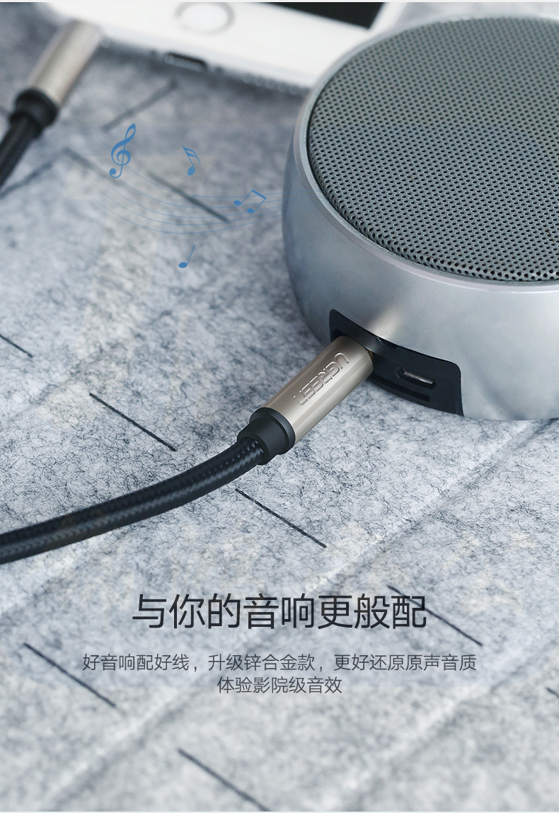 绿联 镀银AUX车用立体声音频线 3.5mm公对公车载连接线手机笔记本接音响功放 耳机电脑对录线 黑色-棉网编织 10米