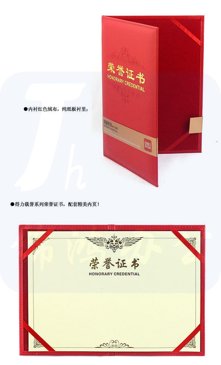 得力 7580-6K荣誉证书(载誉) 合上尺寸;210*295mm