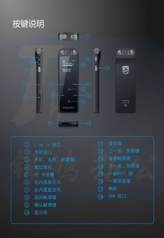 飞利浦(PHILIPS)VTR8060 16GB 会议 学习记录 WIFI 语音转文本 APP文件传输分享 智能数字降噪录音笔 蓝色