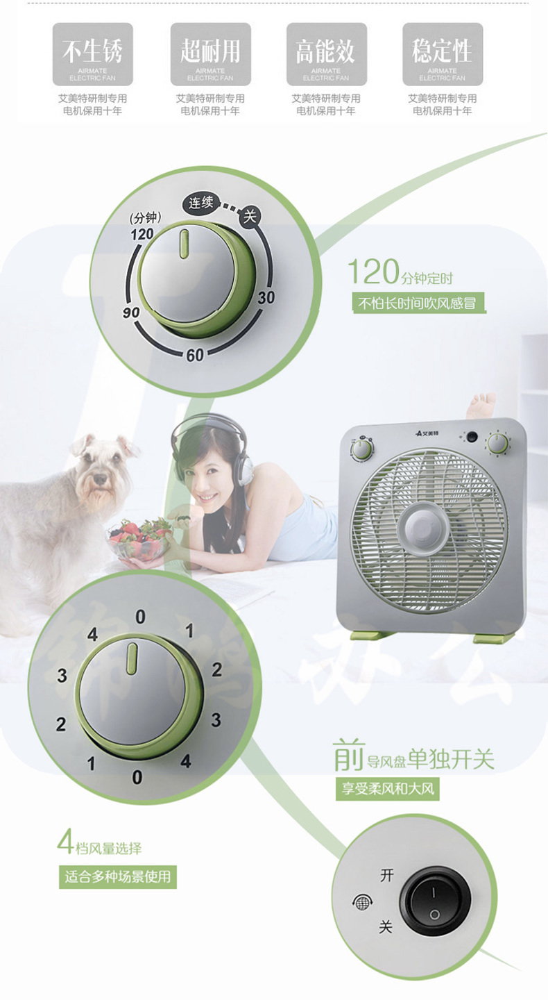 艾美特(Airmate)台式转页扇家用迷你静音定时鸿运电风扇FB3059T2