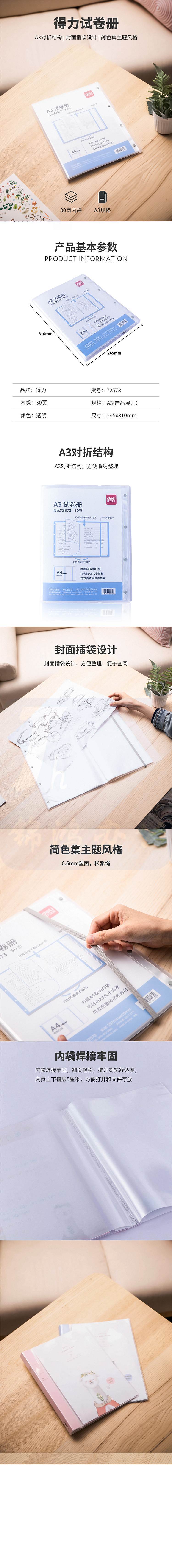 得力72573 30页A3试卷册资料册(12个/包)透明 单位:个