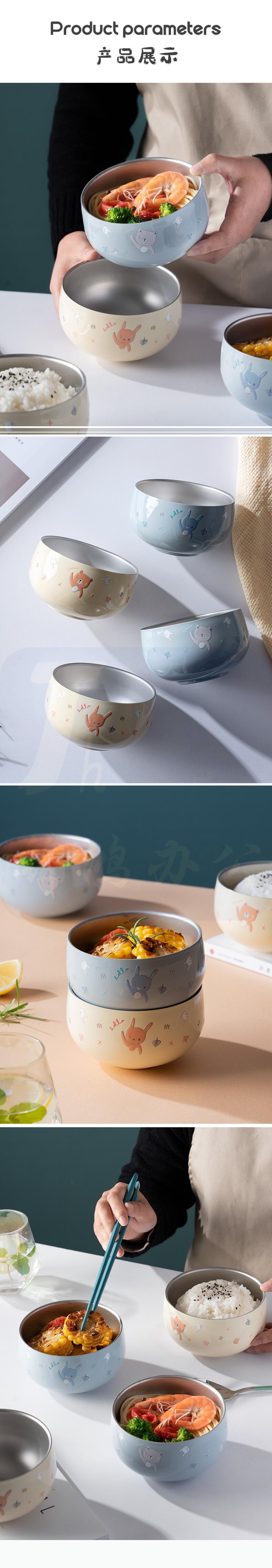 316不锈钢碗食品级防摔防烫餐具 蓝色兔兔/带盖子