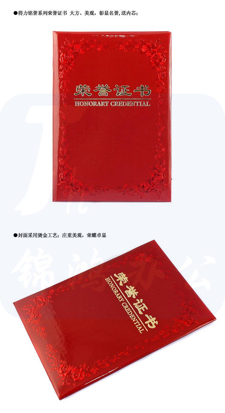 得力 7569 荣誉证书12k 148*210mm 红色、