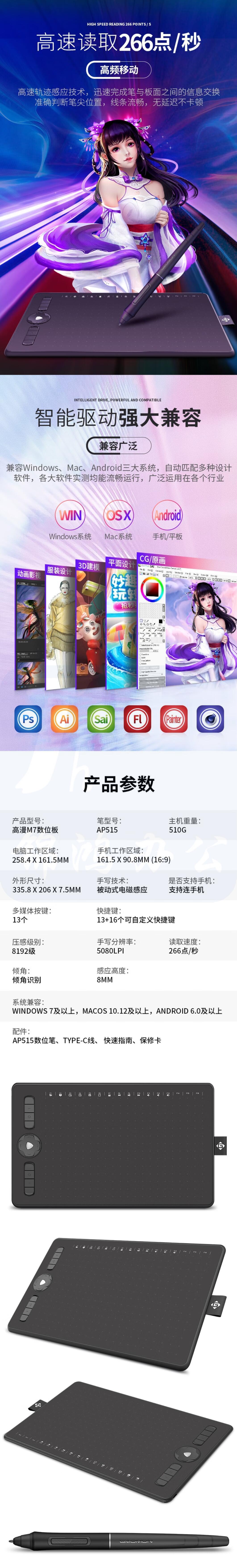 高漫M7数位板 手机手绘板 电脑绘图板 智能手写板