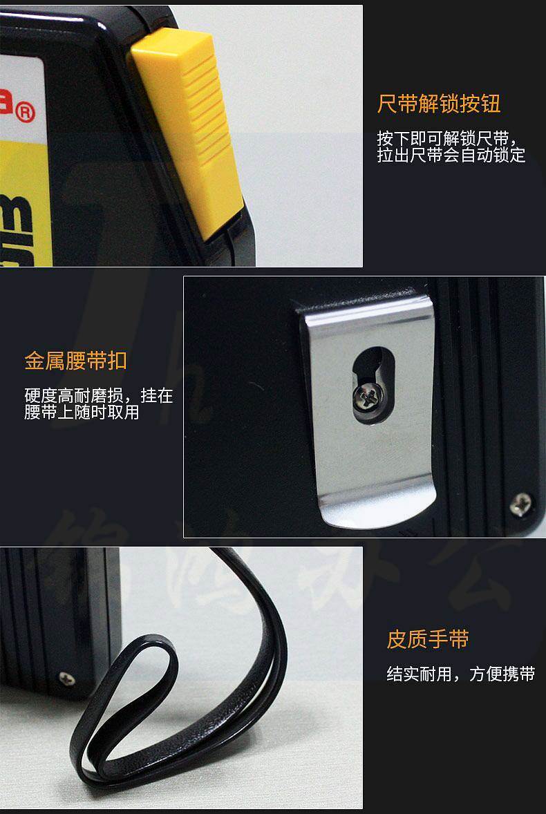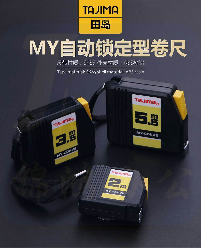 品牌:日本田岛; 尺寸:尺带5.5M*19mm; 材质:尺带进口SK85钢,弹簧进口SK85钢,尺壳亚克力树脂以及聚碳酸脂树脂,JIS1级,垂平气泡管,内部测量,印记边款以及锁定机构减震器,测量更精密,简单,方便; 包装规格:6把/盒/60把/箱;