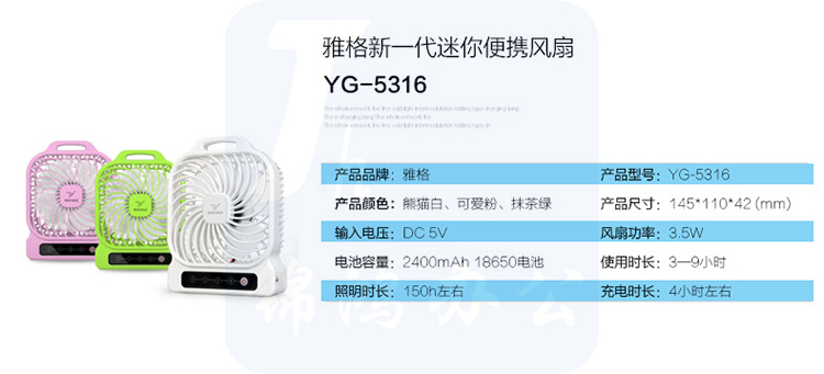 雅格 (YAGE) 可充电电池随身迷你小风扇 YG-5316 USB