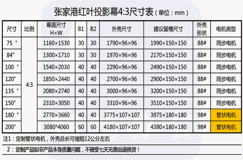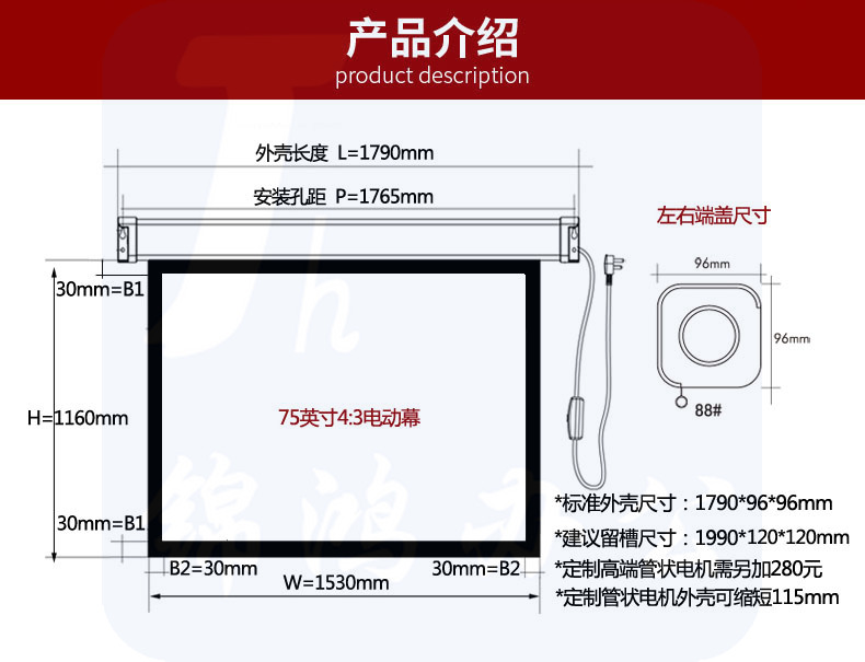 1.53*1.16 全新正品 质保一年 方管加厚外壳 电动投影幕75寸4:3白玻纤 玻珠 白塑幕布