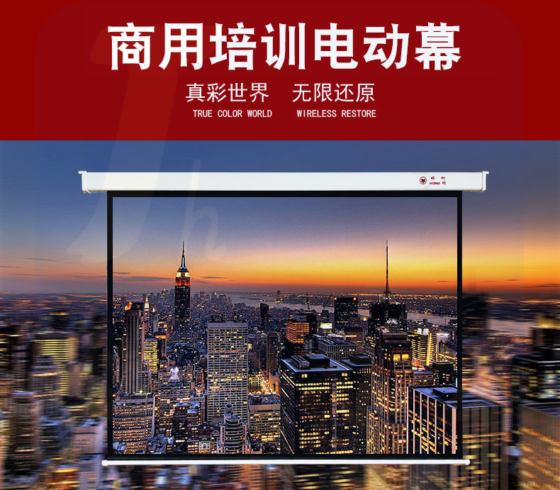 红叶 电动投影幕75寸4:3白玻纤 玻珠 白塑幕布 1.53*1.16