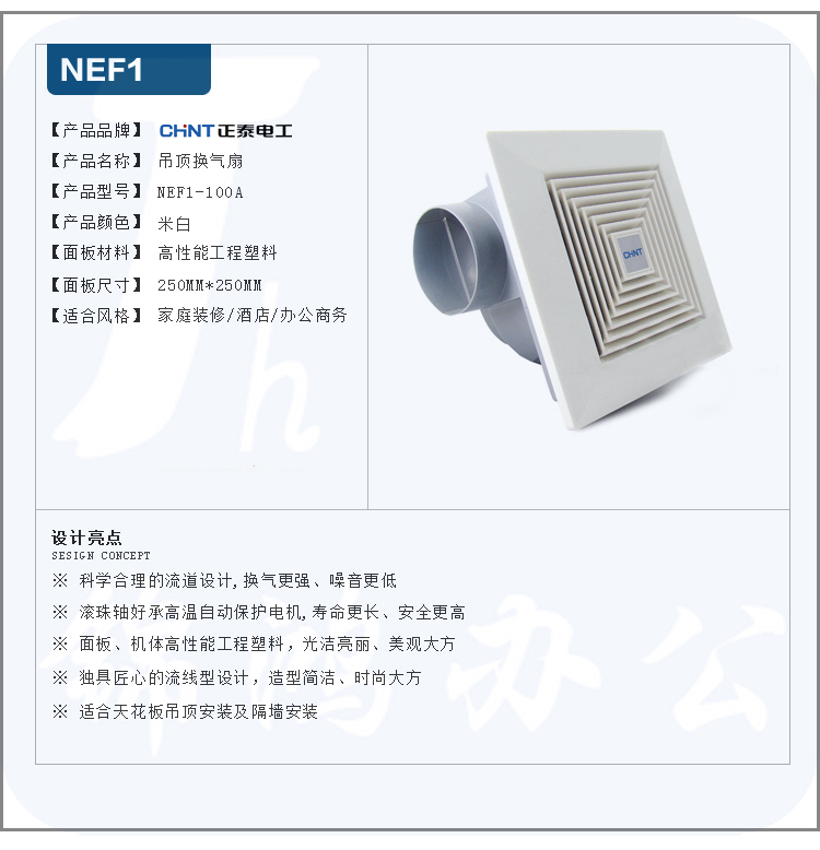 正泰 NEF1-101A 面板300*300MM 方环形管道吸顶扇 吸顶扇面板