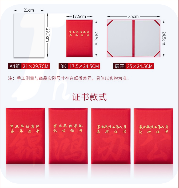 高档绸面事业单位工作人员嘉奖证书 8K 货号:JC