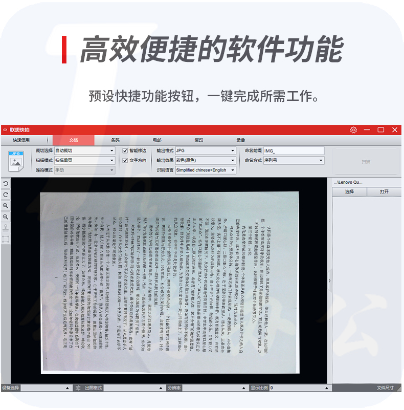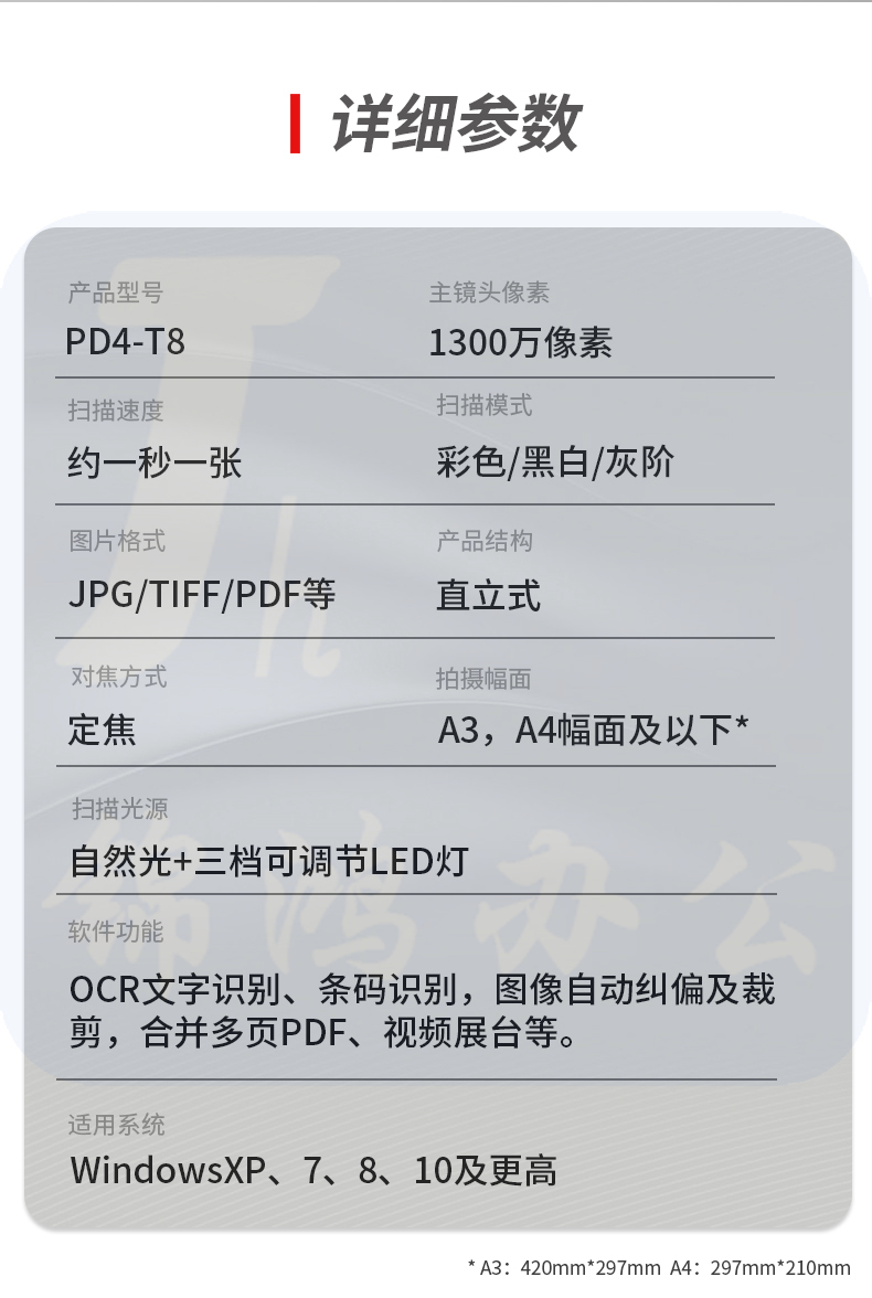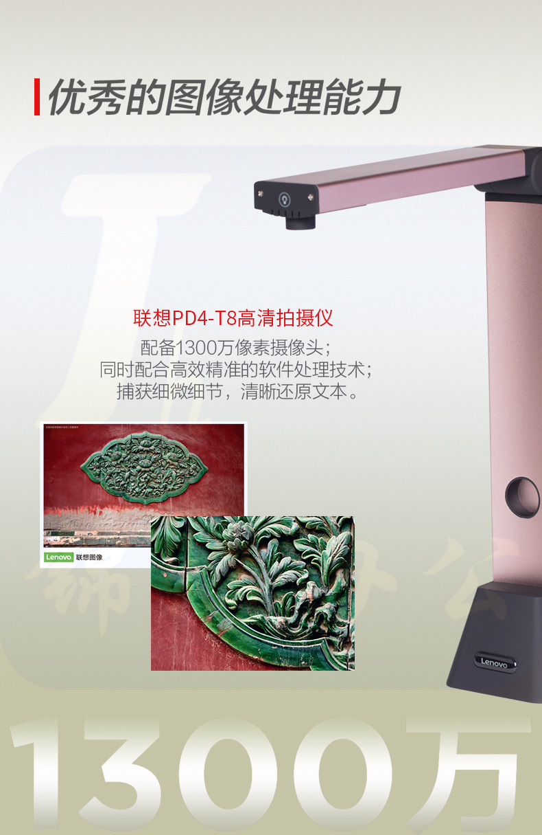 联想(Lenovo)PD4-T8高拍仪 1300万高清像素软底座 小巧便携型A3大幅面