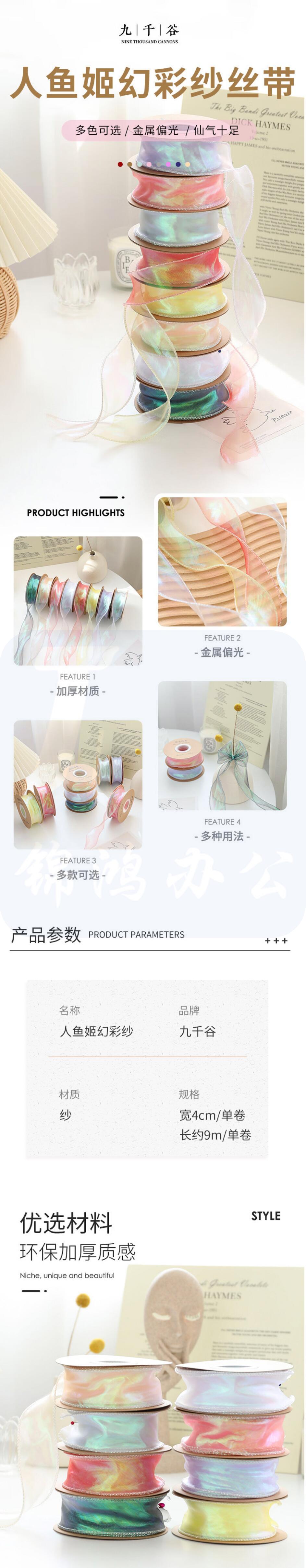 九千谷 幻彩纱丝带 鱼尾纱带卷边拷边园艺鲜花包装扎带 贝壳粉 货号:GD