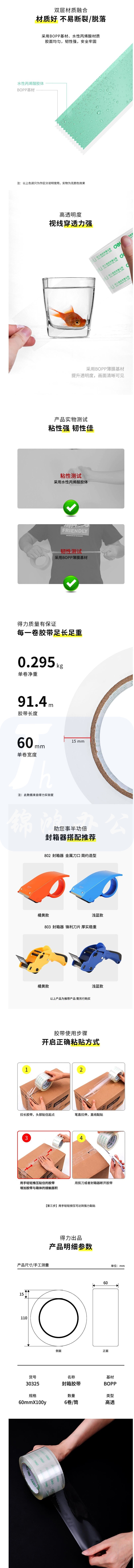 得力/deli 30325 高透明封箱胶带 60mm*100y*50um(91.4m/卷) 6卷/筒