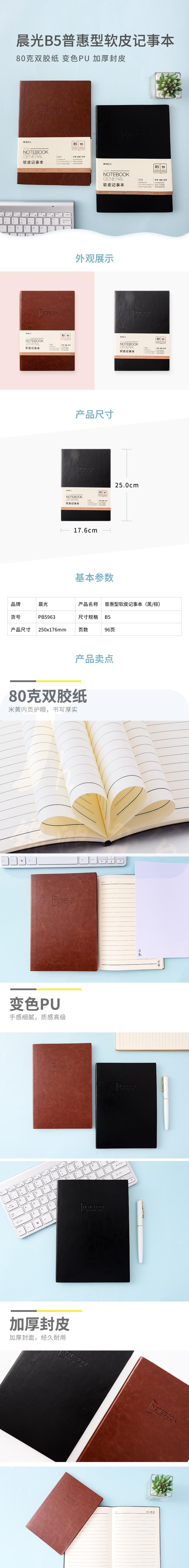 晨光B5软皮本96张 皮面笔记本记事本PB5963(黑/棕随机)