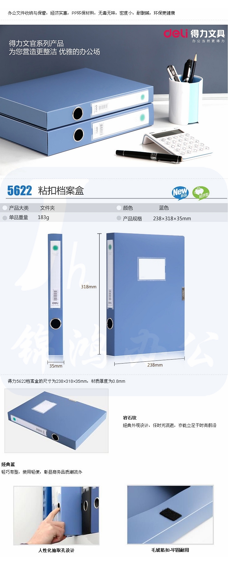 得力 5622 黑色档案盒 A4 48个/箱 尺寸; 238x318x35mm