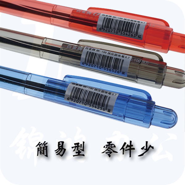 书写流畅、落墨少,油墨量增加40% 请勿将笔头向上书写防止油墨逆流 书写角度请不要低于50° 不用时请将笔头揿入,避免污损口袋 替换芯时,请将笔芯插入宝塔形弹簧小头的一边 颜色:黑色 包装:10支/盒