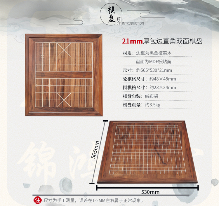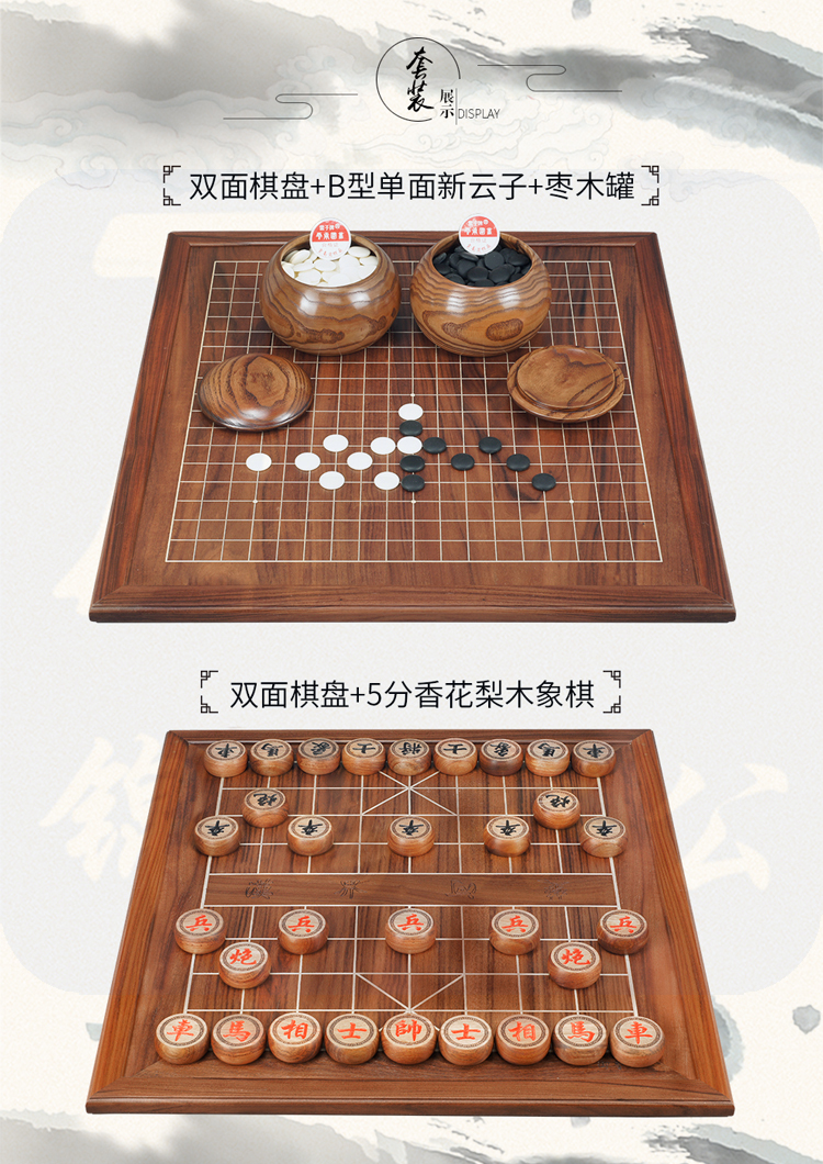 御圣(YUSHENG) 黑金檀实木包边双面棋盘围棋云子枣木罐套装